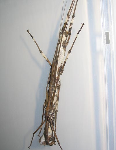 reunasarka on mustavalkoraidallinen. Jalat ovat pitkät ja ohuet. Tuntosarvet ovat 8 cm pituiset.